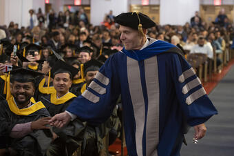Before the degrees were conferred, President Ari Berman encouraged the graduates to persevere through a time of “deep disruption” by renewing their pledge to the values of Yeshiva University to create a better world in a spirit of compassion and kindness.